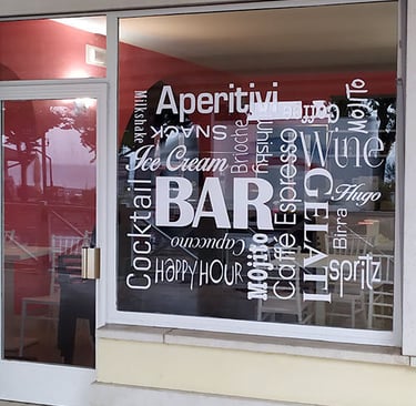 Valorizziamo la tua attivita' con decorazioni su misura di vetrine e interni.